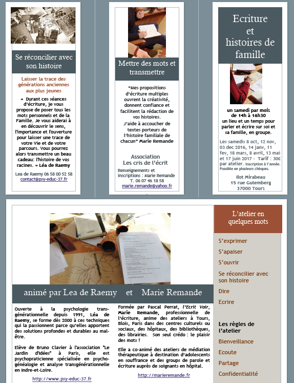 NOUVEAU : "Ecriture et histoires de famille" 2016-2017