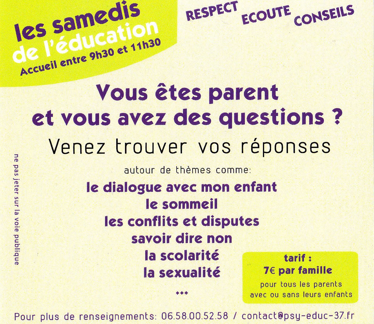 Je vous propose un atelier le samedi matin, entre 9h30 et 11h30